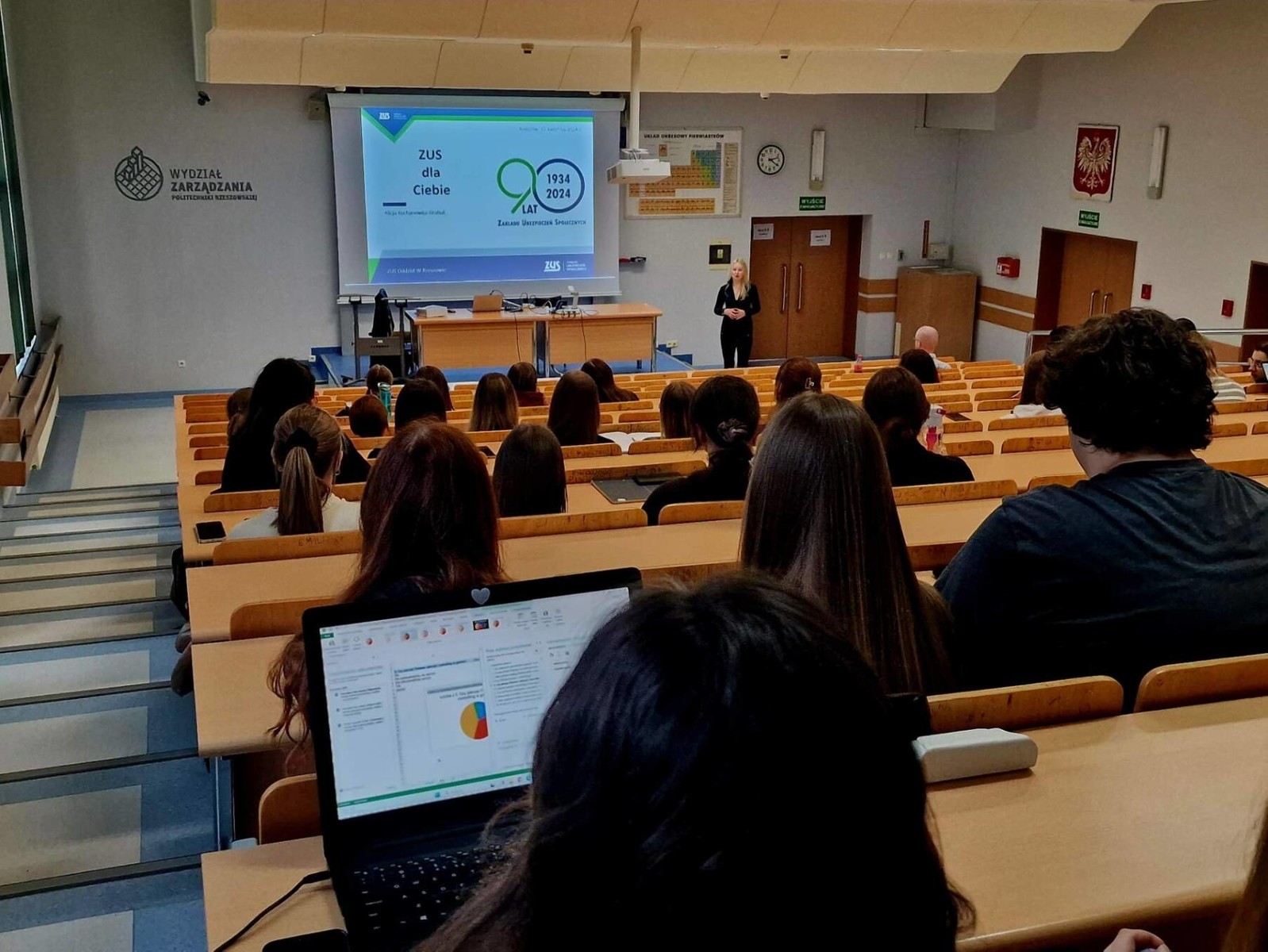 Podczas wykładu uczestnicy mieli możliwość zgłębienia wiedzy na temat roli ZUS w kontekście zarządzania finansami i obowiązkami ubezpieczeniowymi. Tematyka ta jest szczególnie istotna dla studentów kierunków rachunkowość i finanse, gdyż pozwala na lepsze zrozumienie praktycznych aspektów pracy w tej branży.